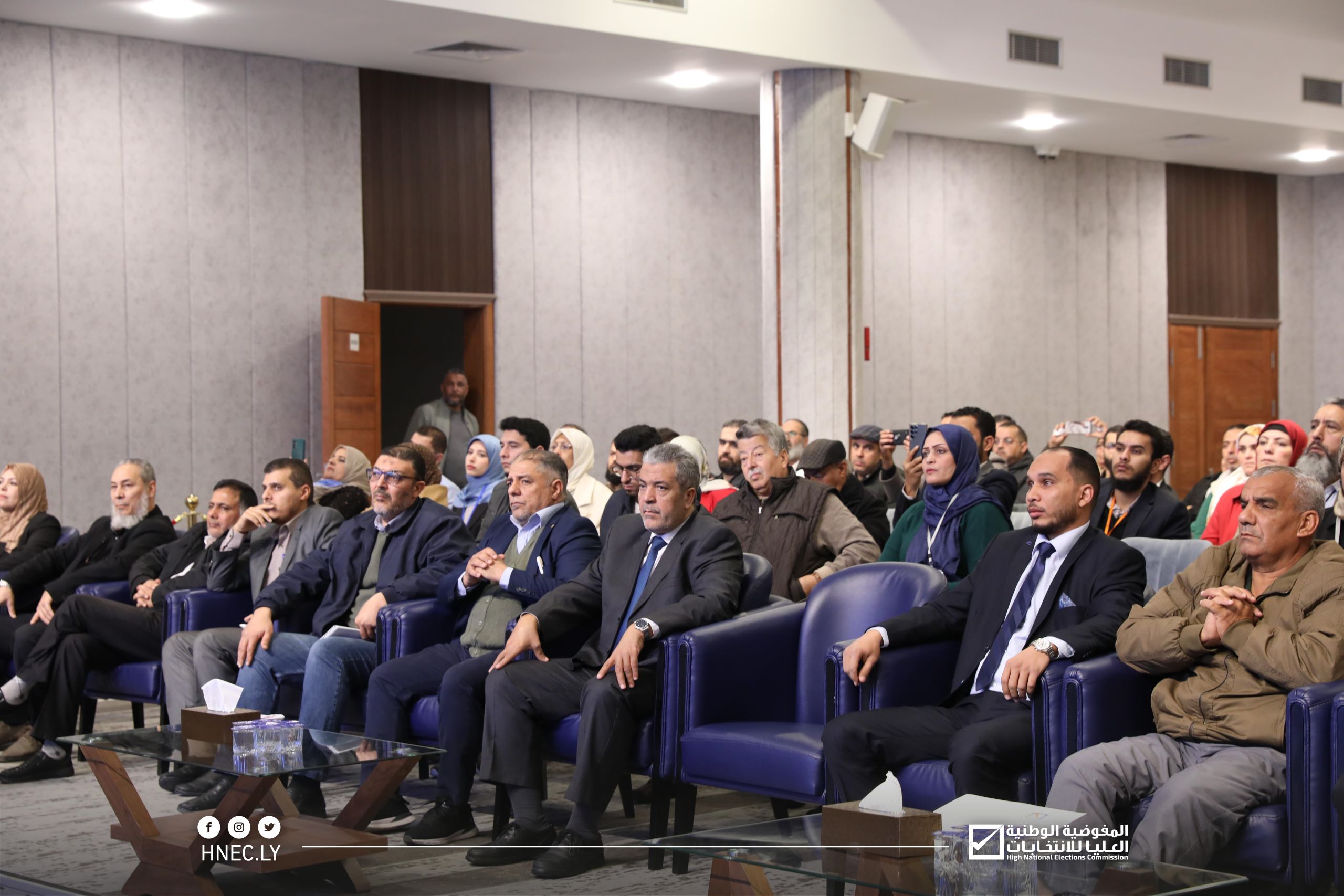 وقدم مدير إدارة العمليات الميدانية السيد الصادق الزكار، عرضًا تقديميًا حول هيكلية تنفيذ انتخاب المجالس البلدية. تضمّن إحصائيات حول البلديات المستهدفة في العملية الانتخابية، والمكاتب التي ستشرف على انتخابات هذه البلديات، وعدد مراكز الاقتراع المخصصة للعملية الانتخابية، موضحاً أهمية ربط رقم هاتف المواطن برقمه الوطني، كشرط أساسي حتى تتمكن منظومة تسجيل الناخبين من قبول طلب تسجيله.