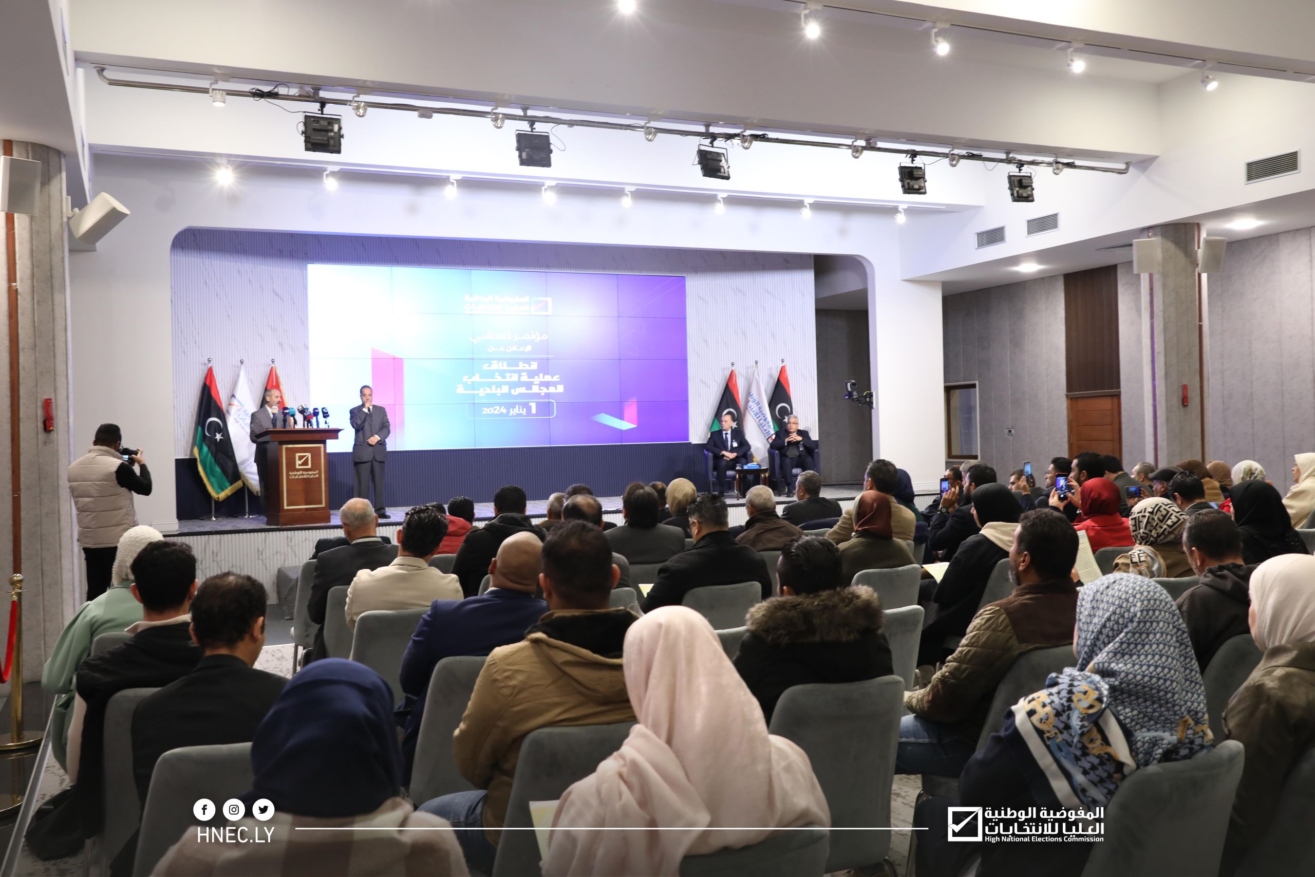 أعلنت المفوضية الوطنية العليا للانتخابات اليوم، الاثنين الموافق 1 يناير 2024، انطلاق عملية انتخاب المجالس البلدية، وذلك خلال مؤتمر صحفي عقدته اليوم في المركز الإعلامي بمقرها في طرابلس، وبحضور عدد من الإعلاميين ومراسلي وكالات الأنباء والقنوات الفضائية وممثلين عن منظمات المجتمع المدني.